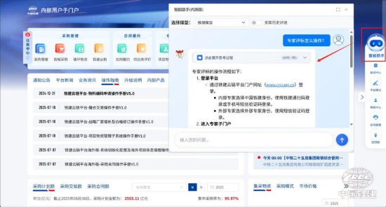 日前,鐵建云鏈平臺(tái)采購(gòu)方智能助手正式上線運(yùn)行,標(biāo)志著鐵建云鏈平臺(tái)智能化應(yīng)用場(chǎng)景從供應(yīng)商服務(wù)端向采購(gòu)方服務(wù)端實(shí)現(xiàn)全面擴(kuò)圍,成功構(gòu)建起連接采供兩端的全鏈路智能服務(wù)體系,為中國(guó)鐵建供應(yīng)鏈管理深化提升注入強(qiáng)勁智慧動(dòng)能。